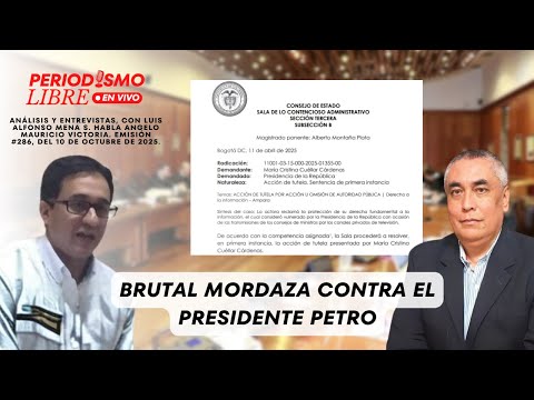 En un dictatorial fallo, el Consejo de Estado arremete de nuevo contra el presidente Gustavo Petro y coarta abusivamente su libertad de expresión, las transmisiones de sus alocuciones y los consejos de ministros por televisión, no solamente la privada sino la pública. Además, le otorga ilegalmente facultades de tribunal de censura a la Comisión de Regulación de Comunicaciones. La guerra judicial adelantada por magistrados Vargas-lleristas crece. El profesor Angello Mauricio Victoria analiza, en entrevista con Luis Alfonso Mena, este gravísimo ataque a los derechos del Presidente.
